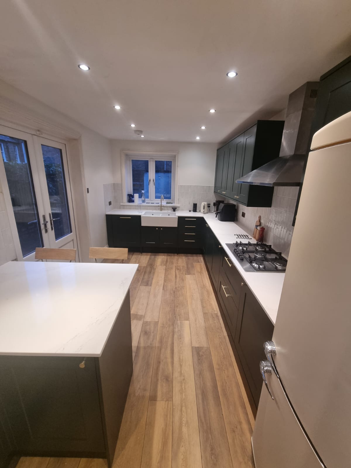 "We had our new kitchen fitted and and tiled and we couldn't speak highly enough of these guys. From start to finish the communication was excellent. Workmanship faultless, and made the job run smoothly all the way through. Kept things clean and tidy after every day before they left. Great guys to get along with, Would definitely recommend. Thank you."